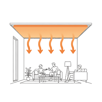 La pittura al grafene, una volta stesa e collegata a semplici elettrodi di rame, genera calore grazie all’effetto Joule. Il sistema, che diffonde calore per irraggiamento in modo omogeneo e silenzioso, consente di ottenere una distribuzione termica stabile e uniforme, senza stratificazioni. L’emissione avviene tramite infrarossi a onde lunghe, una radiazione a bassa energia e non nociva, che non viene dispersa nel riscaldamento dell’aria, ma agisce direttamente sul corpo, generando una piacevole sensazione di benessere termico.