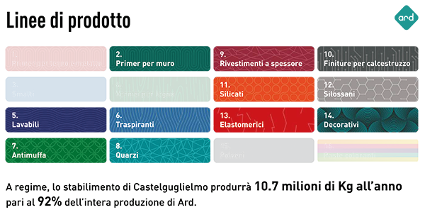 Ard Raccanello, azienda nata nel 1939 a Padova, produce una gamma completa di prodotti per l’edilizia: dalle tradizionali idropitture murali per interni, al rinomato grassello di calce, dalle professionali finiture ad elevate prestazioni per esterni, ai prodotti per l’applicazione del cappotto sugli edifici, che ne migliora in modo sostanziale le prestazioni energetiche.