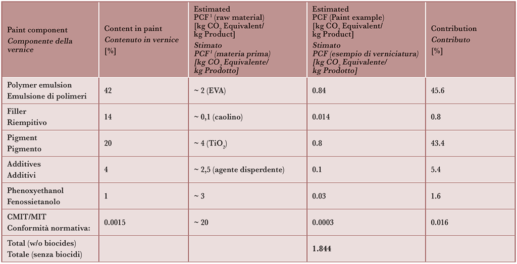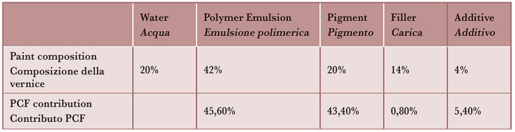 Per rispondere a questa domanda è necessario valutare una tipica formulazione di vernice sotto l’aspetto del PCF.